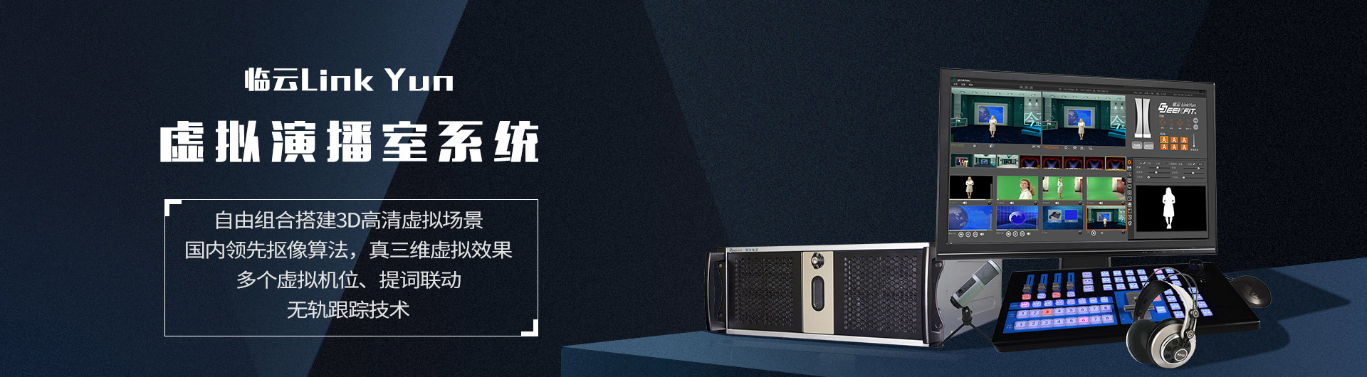 臨云 LinkYun 真三維虛擬演播室系統結構簡單、高度集成,一套產品可以獨立完成傳統演播室中的節目信號切換、字幕疊加、節目播出、信號錄制、虛擬布景、流媒體發布等功能。